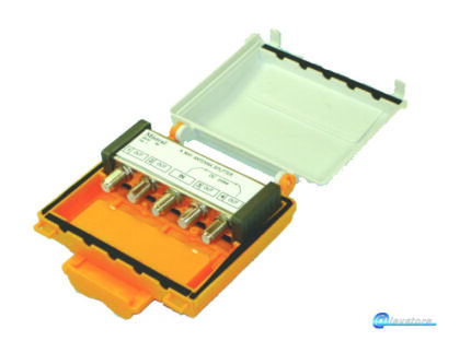 Διακλαδωτήρας θωρακισμένου τύπου με βύσματα F 4 εξόδων με τάση διέλευση τάσης.